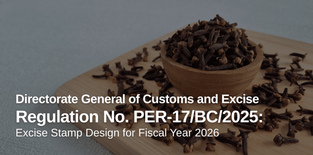 Directorate General of Customs and Excise Regulation No. PER-17/BC/2025 concerning the Physical Form, Specifications, and Design of Excise Stamps for Fiscal Year 2026 (“PER-17”) was stipulated on November 13, 2025 and became effective on the same date.