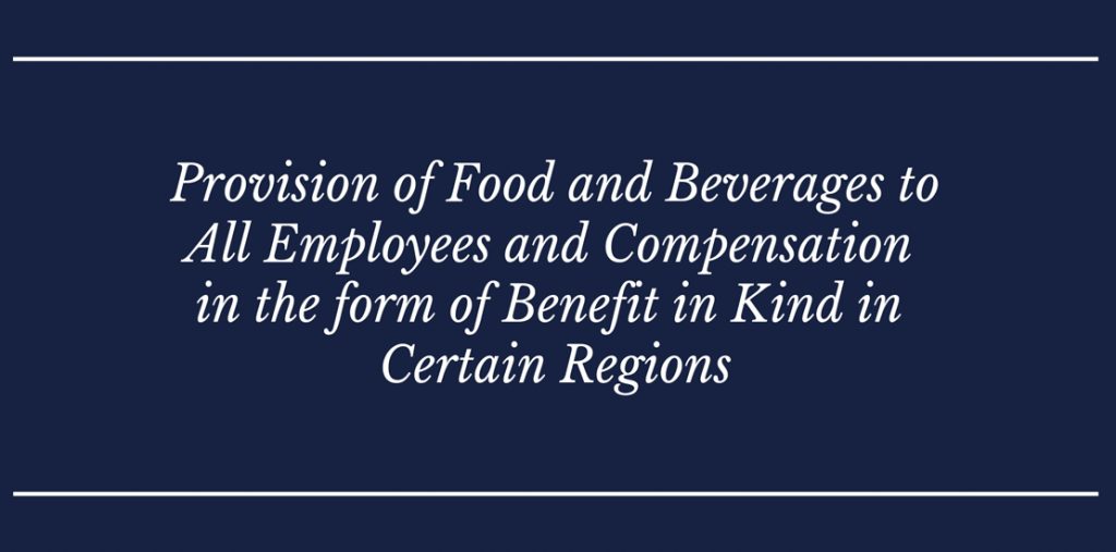 Provision of Food and Beverages to All Employees and Compensation in the form of Benefit in Kind in Certain Regions